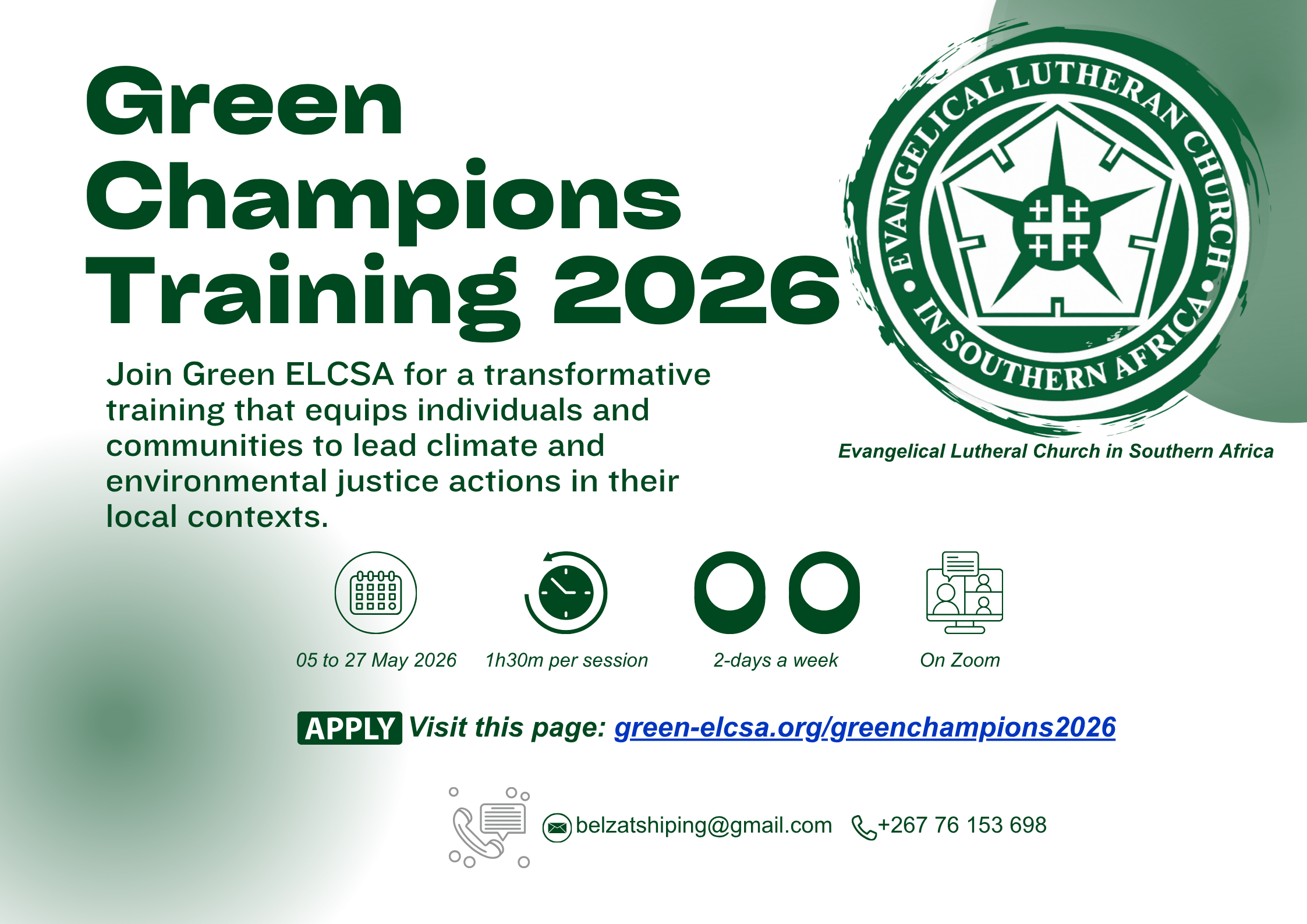 Green ELCSA is excited to announce the launch of the Green Champions Training 2026, a four-week online training experience designed to equip young people and committed ELCSA members to lead environmental action in their churches and communities.